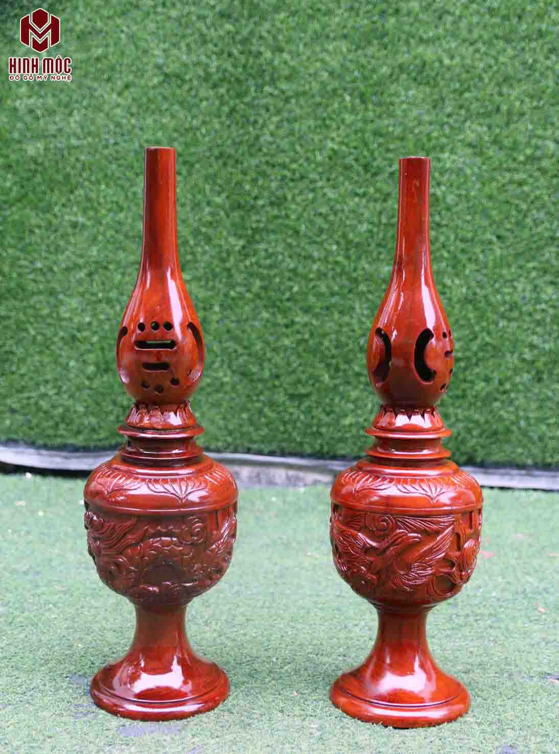 - Đèn rồng phượng (đèn tứ linh) gỗ hương
