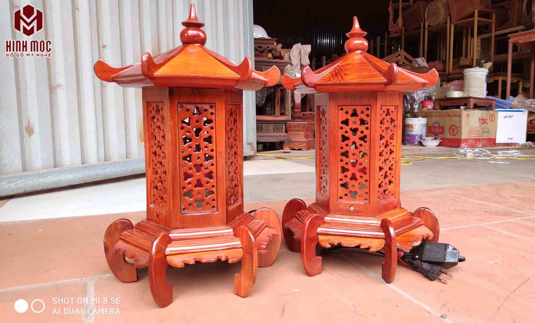 Đèn thờ chân lùn 40cm gỗ hương - Cặp đèn lục lăng siêu đẹp