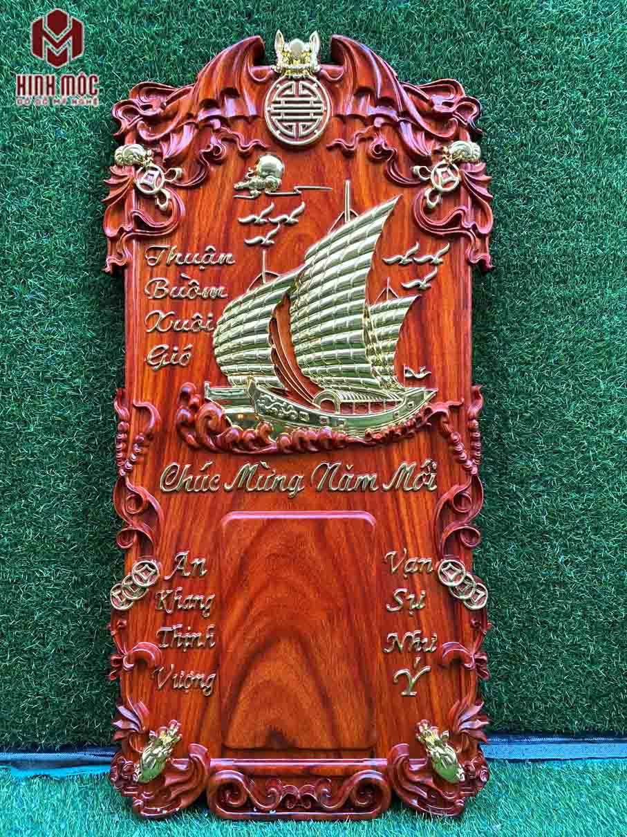 Lịch là bức tranh cầu chúc cho muôn sự tốt lành, may mắn. Với hình ảnh trọng tâm là đoàn thuyền no gió ra khơi. Đường đục sâu, sắc nét, dù sơn PU gỗ hương đá hay mạ vàng gỗ hương đỏ đều rất đẹp.