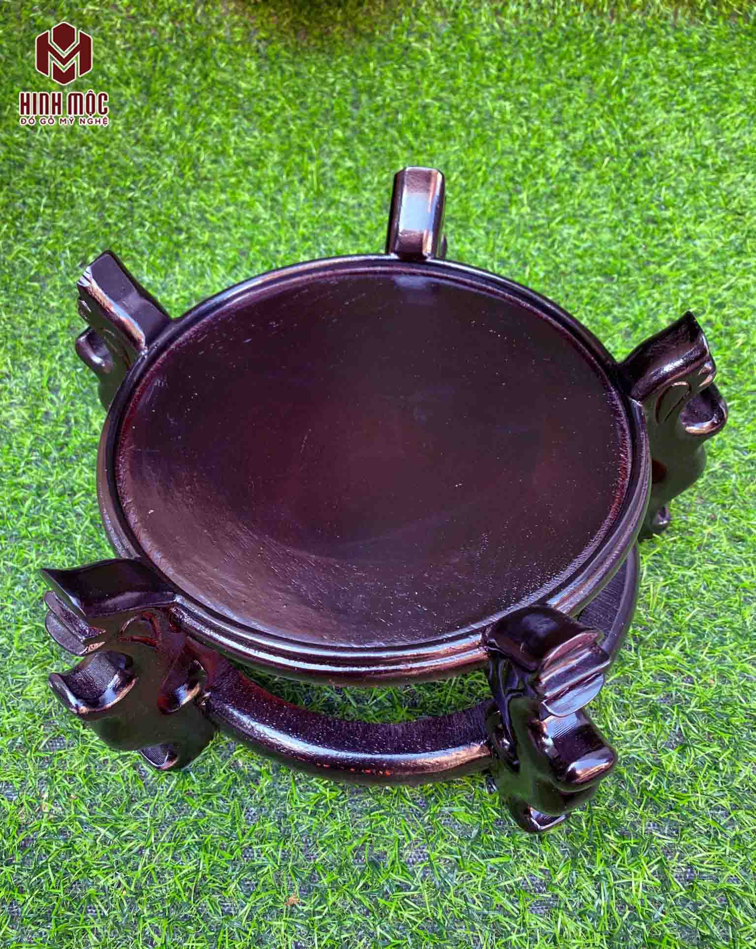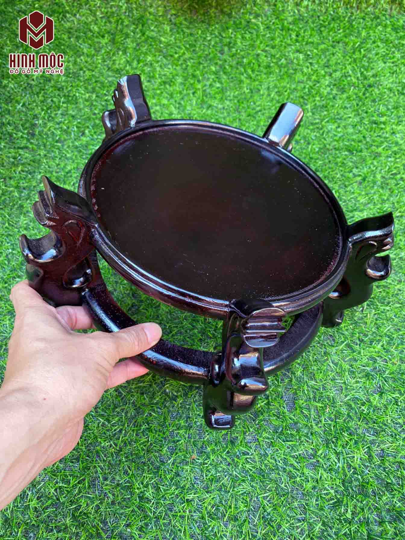 Đế được thiết kế với bề mặt tròn, đường kính 20cm. 5 chân chắc chắn. Ghép mộng, gắn si keo bền vững. Đảm bảo khả năng chịu tải mà vẫn giữ được vẻ đẹp mềm mại, thẩm mỹ. Đế được đóng trên gỗ hương đá nhập khẩu. Sơn màu theo yêu cầu. Chiếc đế tròn này có thể dùng để kê chậu hoa, bể cá cảnh, bình rượu...
