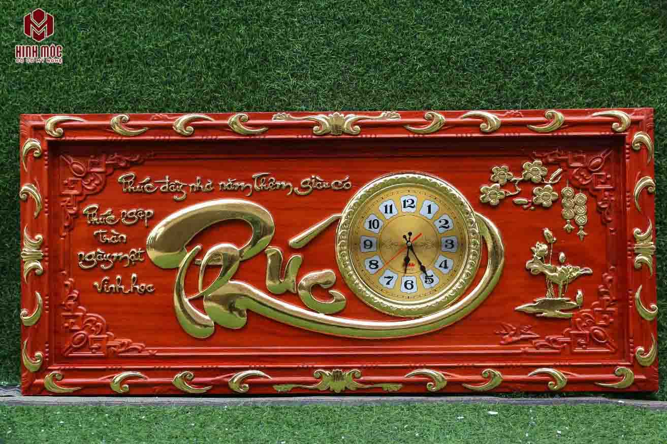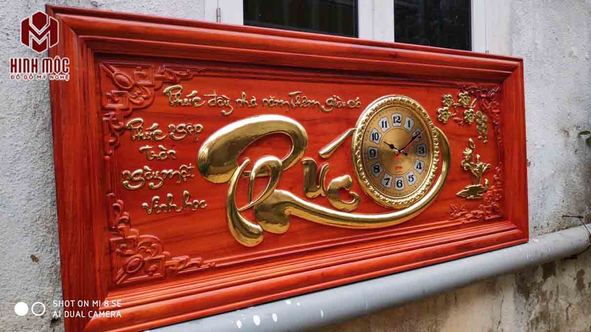 Đồng hồ chữ Phúc dài 1,08m gỗ hương Nam Phi.