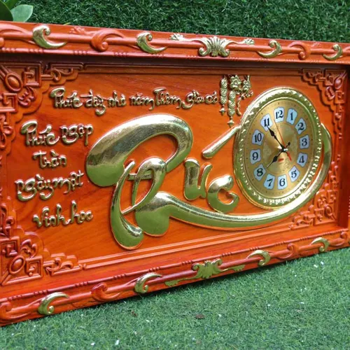 Đồng hồ tranh gỗ chữ Phúc dài 81 rộng 41cm