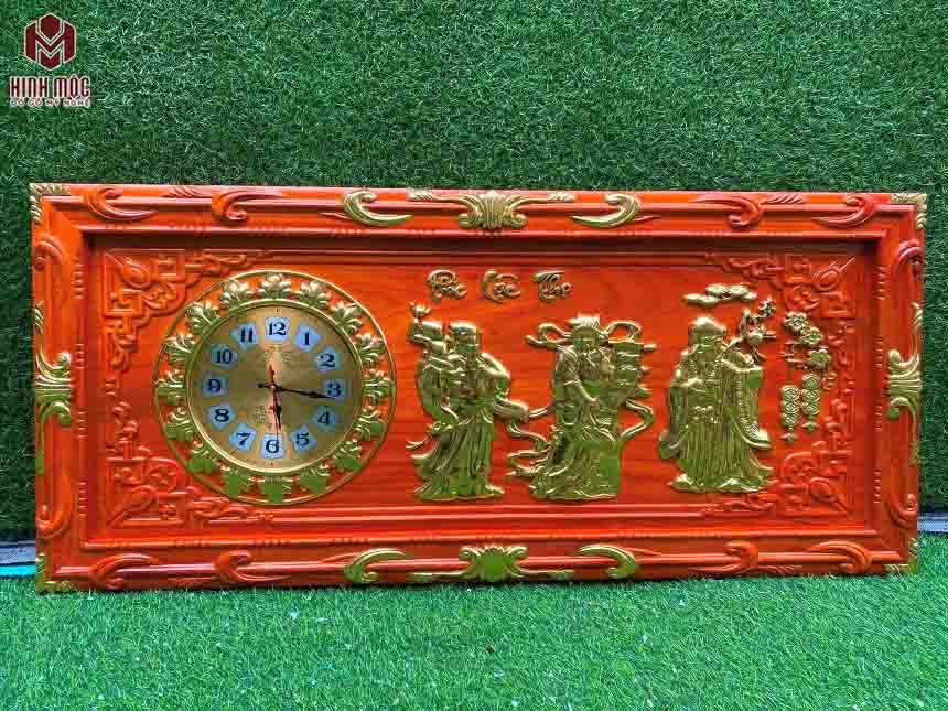 Đồng hồ tranh gỗ Phúc Lộc Thọ cỡ vừa dài 1,08m