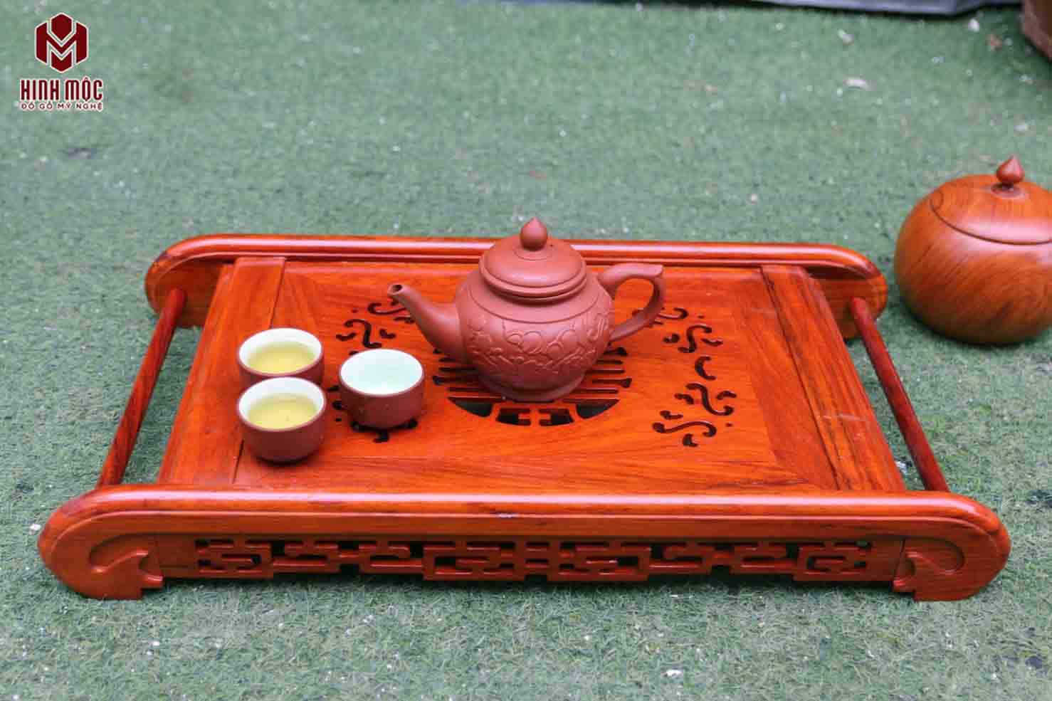 | Tham khảo: Khay trà chân cuốn gỗ mun