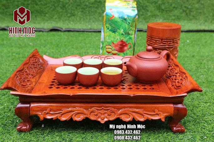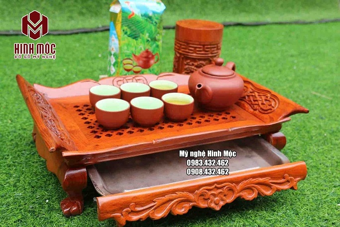 Chất liệu gỗ hương đá giúp chiếc khay trà đẹp ở mọi góc nhìn