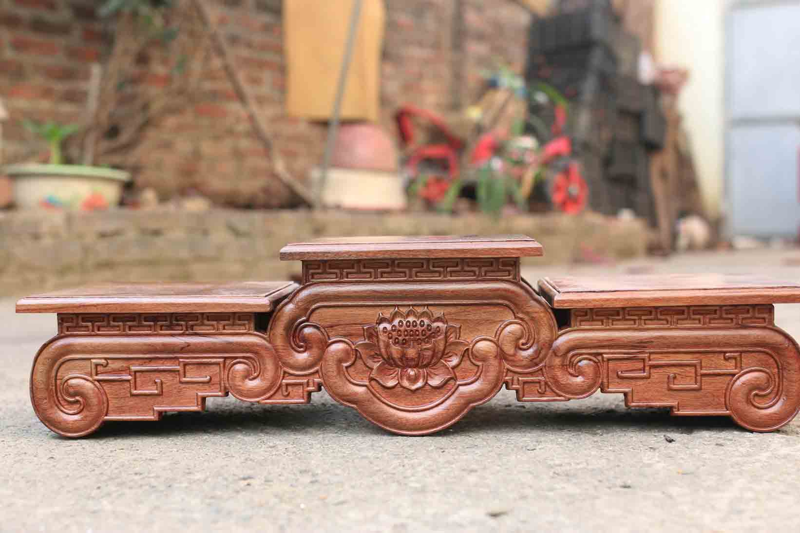 Chân đế 3 cấp tam sơn. Mẫu đẹp sang trọng, dùng kê bát hương trên ban thờ gia tiên. Tam sơn được đóng trên gỗ hương đá, mặt họa tiết được chạm hoa sen bằng máy đục công nghệ cao. Hàng gắn keo si công nghiệp chắc chắn vững bền. Mặt liền, yếm liền, gỗ hương đá tuyển chọn. Gỗ nạc 100%.