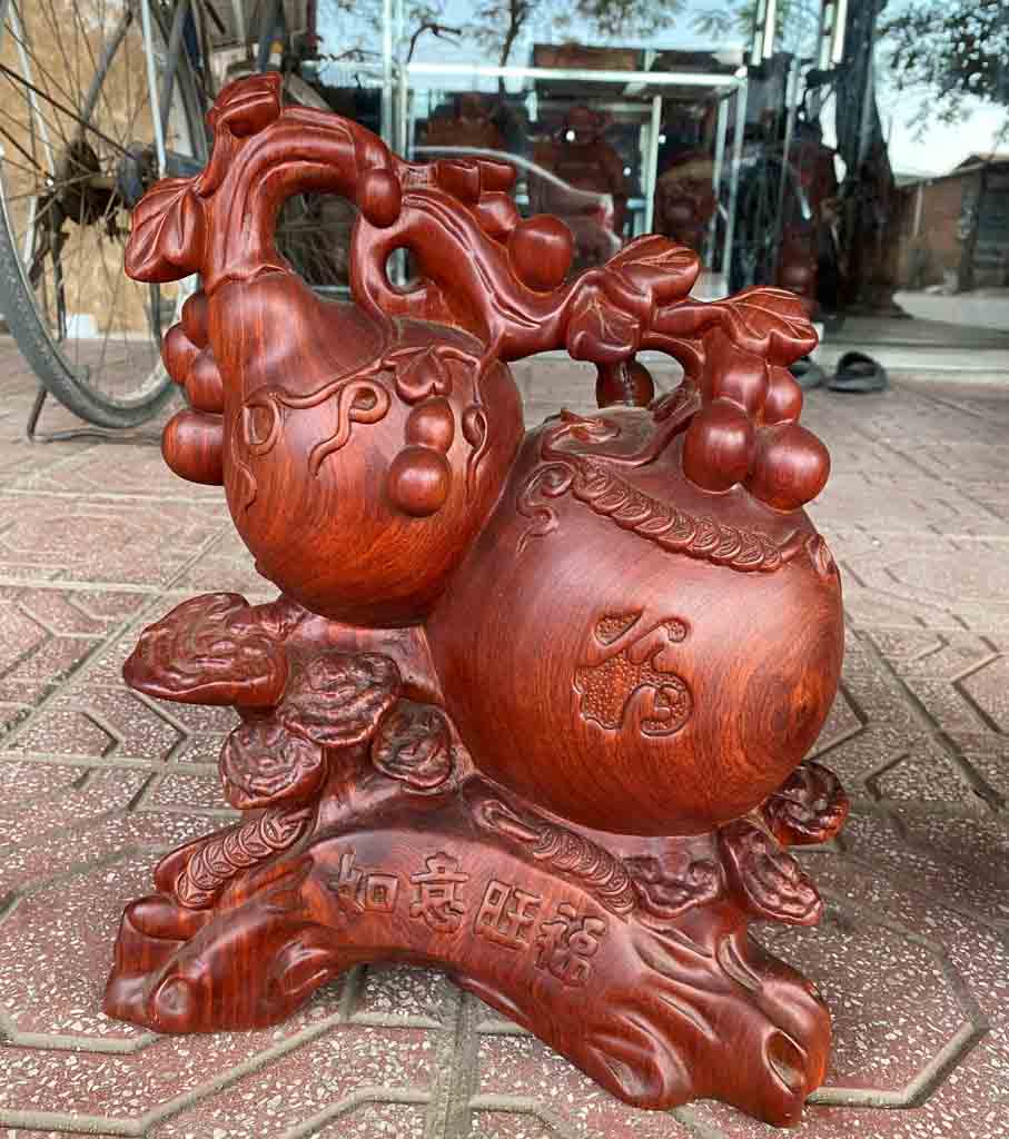 Hồ lô hoa hồng cao 40cm đường kính 21cm, gỗ hương ta giá 3,2 triệu đồng