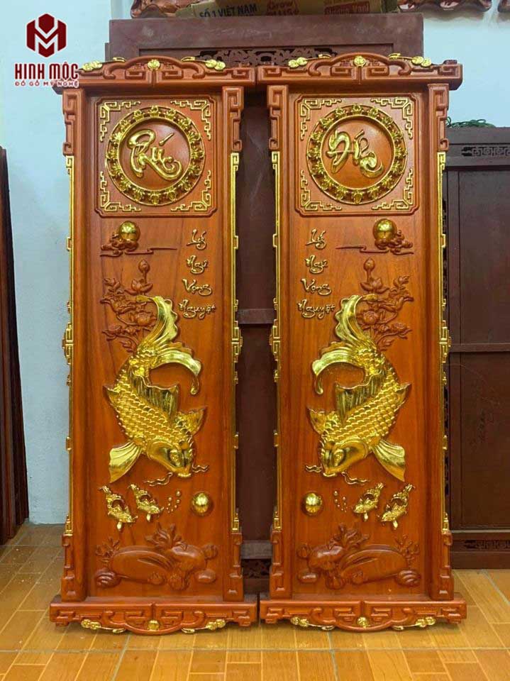 Tranh đục CNC hiện đại, ván dày 3cm, cá chép nổi hơn 2cm, cả bộ tranh là nguyên 1 tấm gỗ hương đỏ Nam Phi liền nạc. Khung tranh liền với thân tranh, triện họa tiết chữ Vạn đẹp mắt, lịch sự. Tranh đục sâu, đục kĩ, gia công kĩ càng, sạch sẽ, sơn PU, mạ vàng theo yêu cầu.