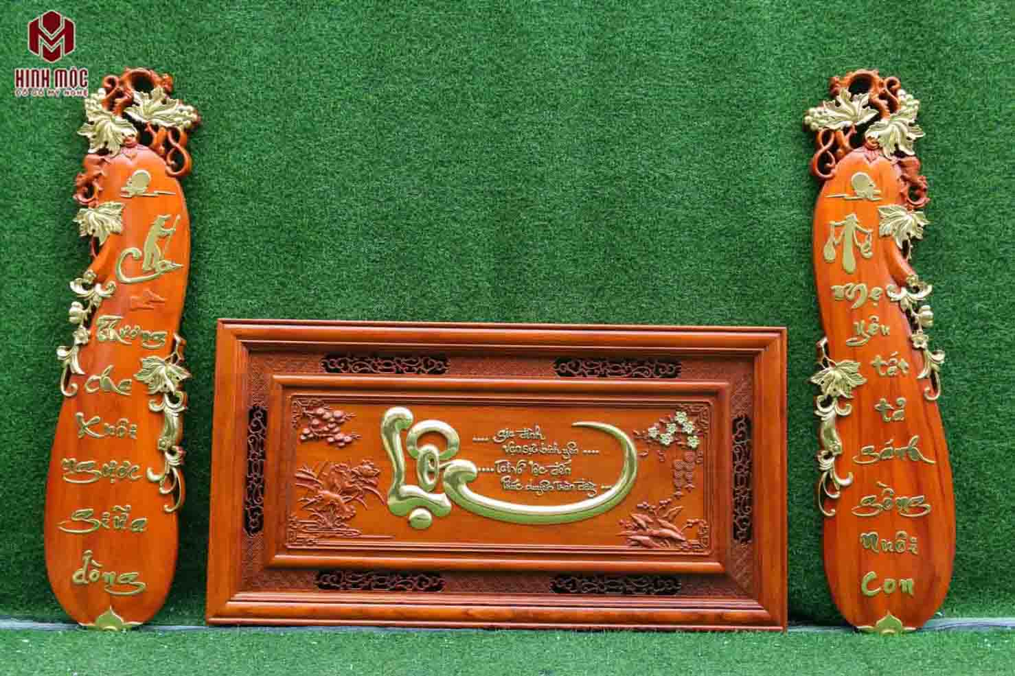 Tranh dài 1,07m rộng 30cm liền khối hoàn toàn. Gỗ hương đỏ cực đẹp, đục nổi, mạ vàng cao cấp.
