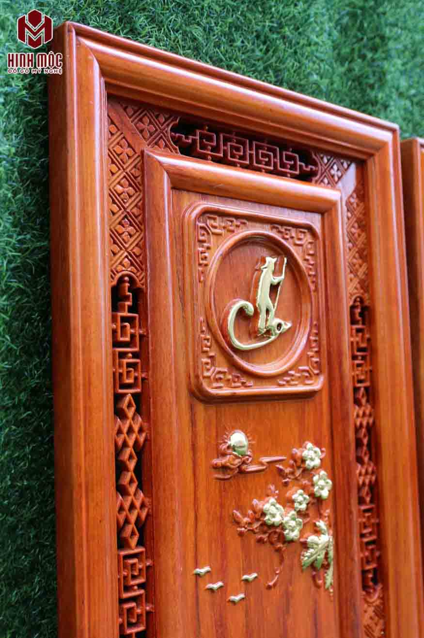 Quy cách: Thân tranh đục máy CNC, sửa lại thủ công. Đóng mộng gỗ chắc chắn. Sơn PU, mạ vàng cao cấp.