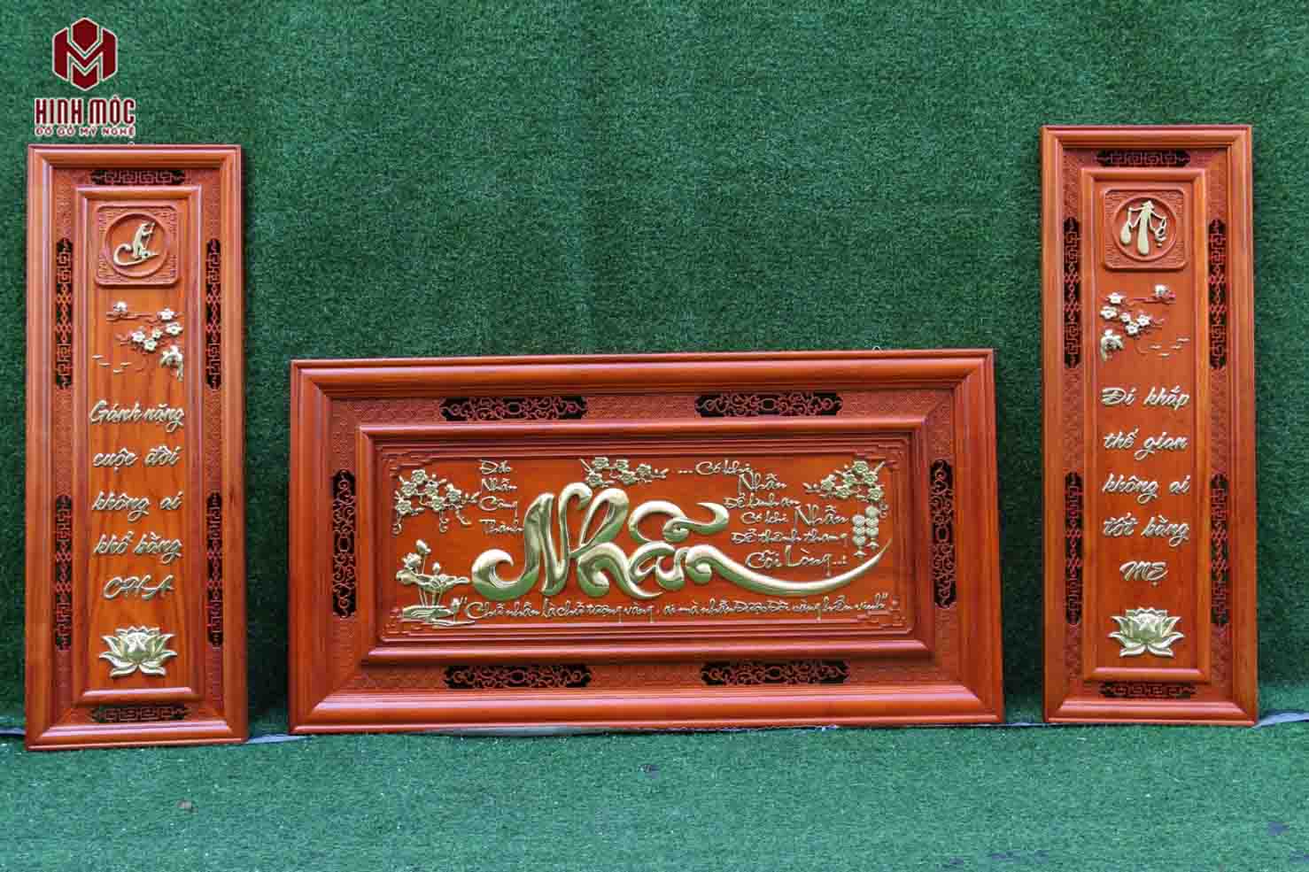 Tranh chữ Nhẫn treo giữa bộ tranh cha mẹ