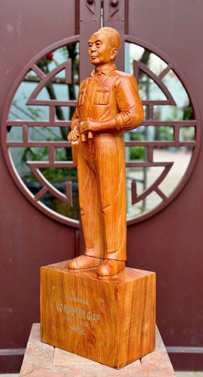 Tác phẩm được tạo hình từ bức ảnh nổi tiếng tướng Giáp chỉ huy chiến dịch Điện Biên Phủ. Trên cơ sở đó, bằng lòng yêu nghề, tài hoa và lòng kính yêu với vị đại tướng của nhân dân, chúng tôi đã đục thành công bức tượng rất đẹp ở trên - Tượng đại tướng Võ Nguyên Giáp cao 60cm gỗ hương đá.