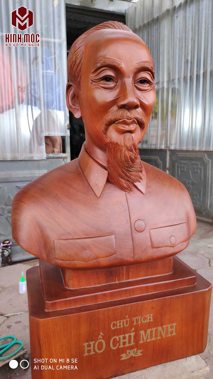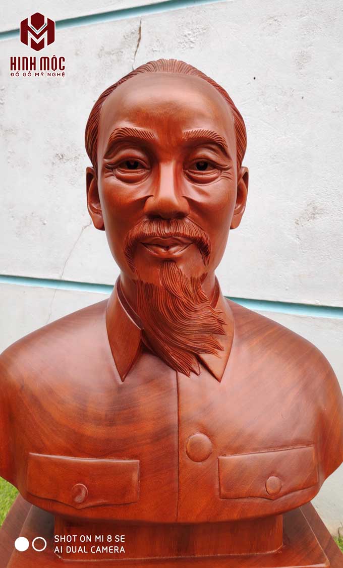 Tượng gỗ chân dung Bác Hồ cao 60cm phù hợp để đặt tại phòng khách, phòng họp, văn phòng cơ quan, làm quà biếu lãnh đạo...