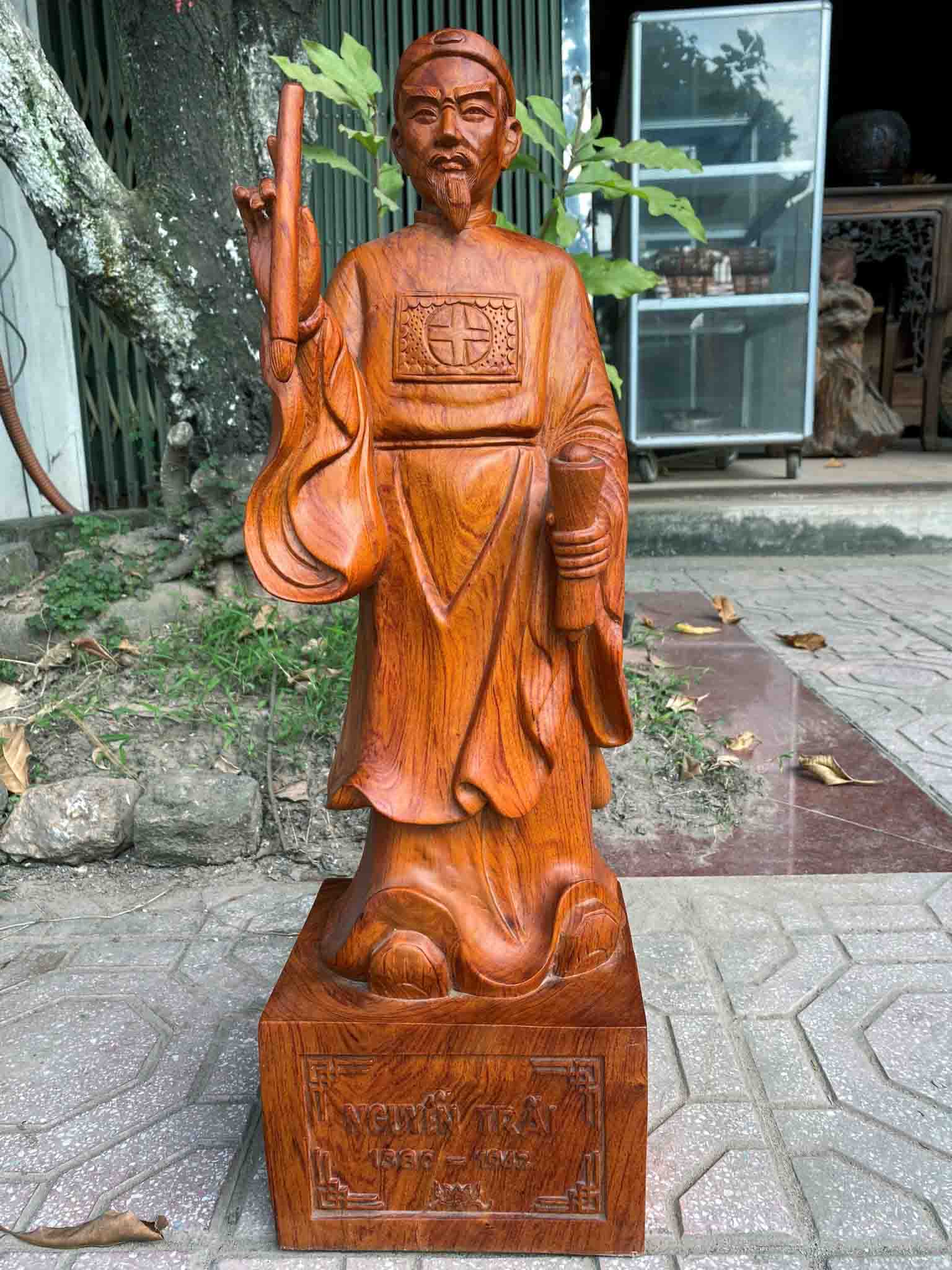 Tượng cụ Nguyễn Trãi được chúng tôi thiết kế dựa trên tượng đài Nguyễn Trãi đặt tại vườn hoa Nguyễn Trãi - Quận Hà Đông. Bức tượng mô tả lại hình ảnh cụ đứng trên bục, tay bút tay nghiên, khoan thai, đĩnh đạc. Tượng thần thái, chân thực cảm giác gần gũi như người cha người ông chứ không chỉ là 1 nhà chính trị, 1 nhà văn hóa lớn.