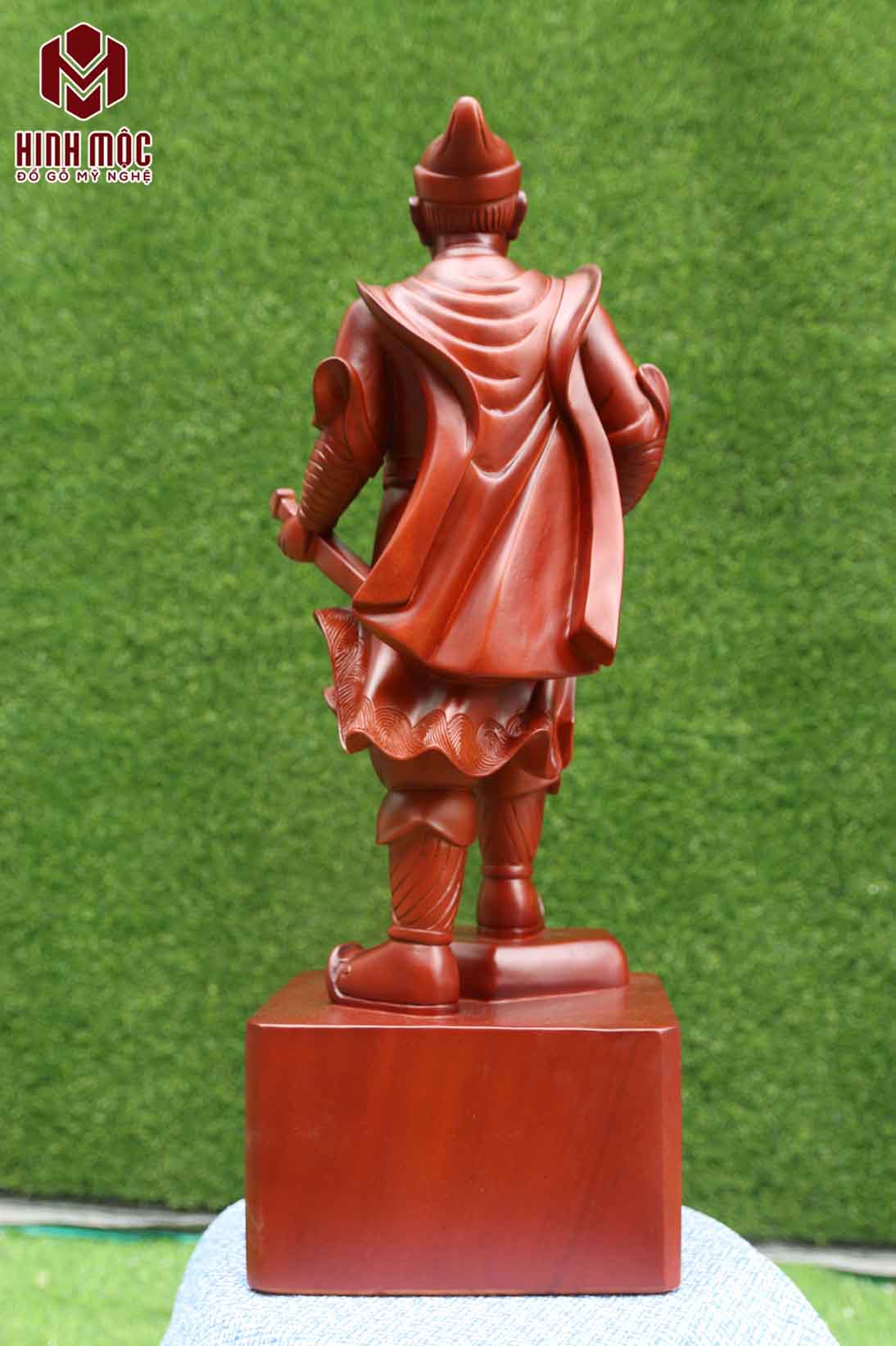 Tượng cao 60cm, ngang 24, sâu 22cm liền khối hoàn toàn. Gỗ hương nhập khẩu đẳng cấp. Gỗ đẹp nuột nà, màu đỏ thẫm tự nhiên, không vết, không có vân lộ trên mặt.