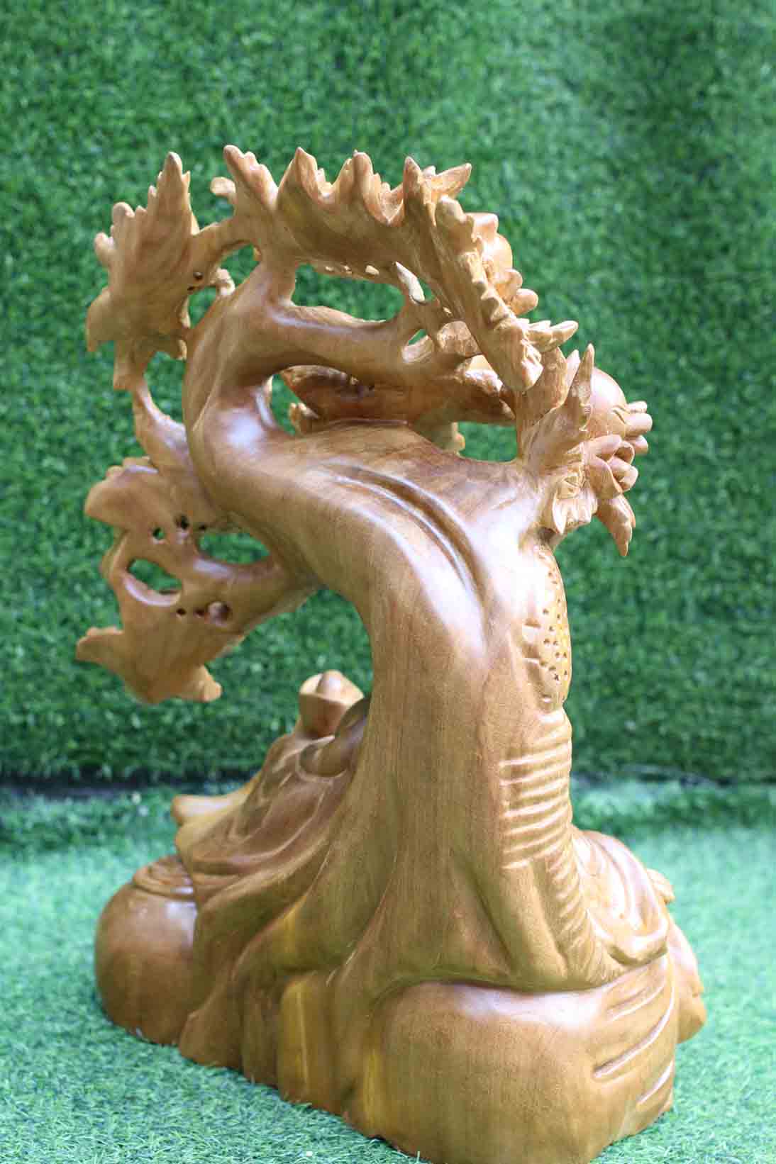 Di Lặc ngồi gốc cây đào gỗ xá xị - Tượng để bàn đẹp thơm nức!