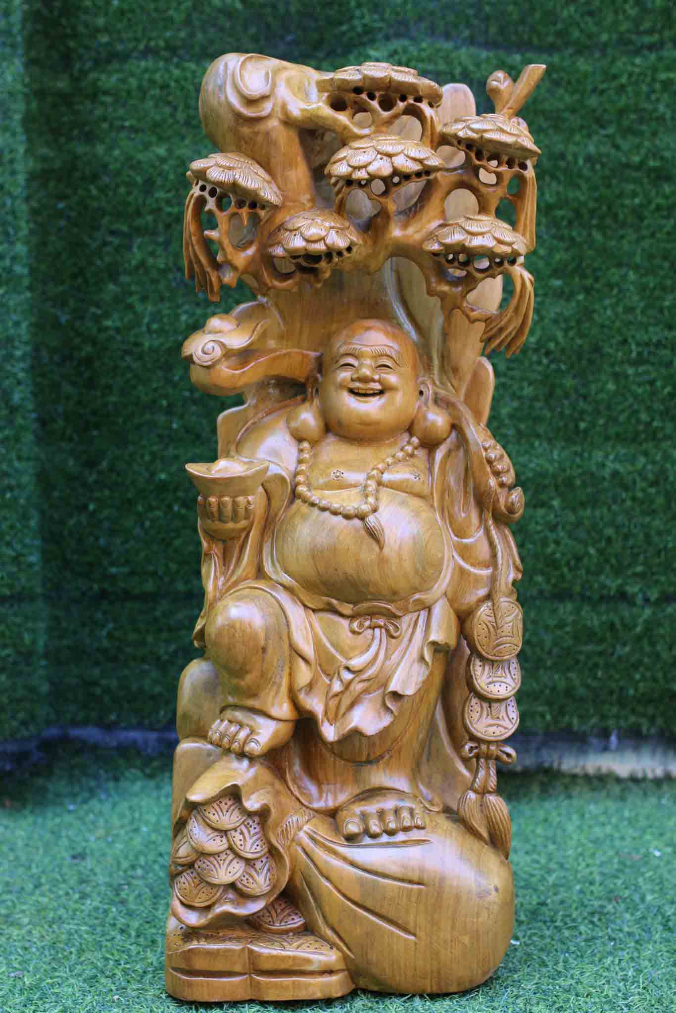 Tượng Di Lặc đứng cây tùng gỗ xá xị