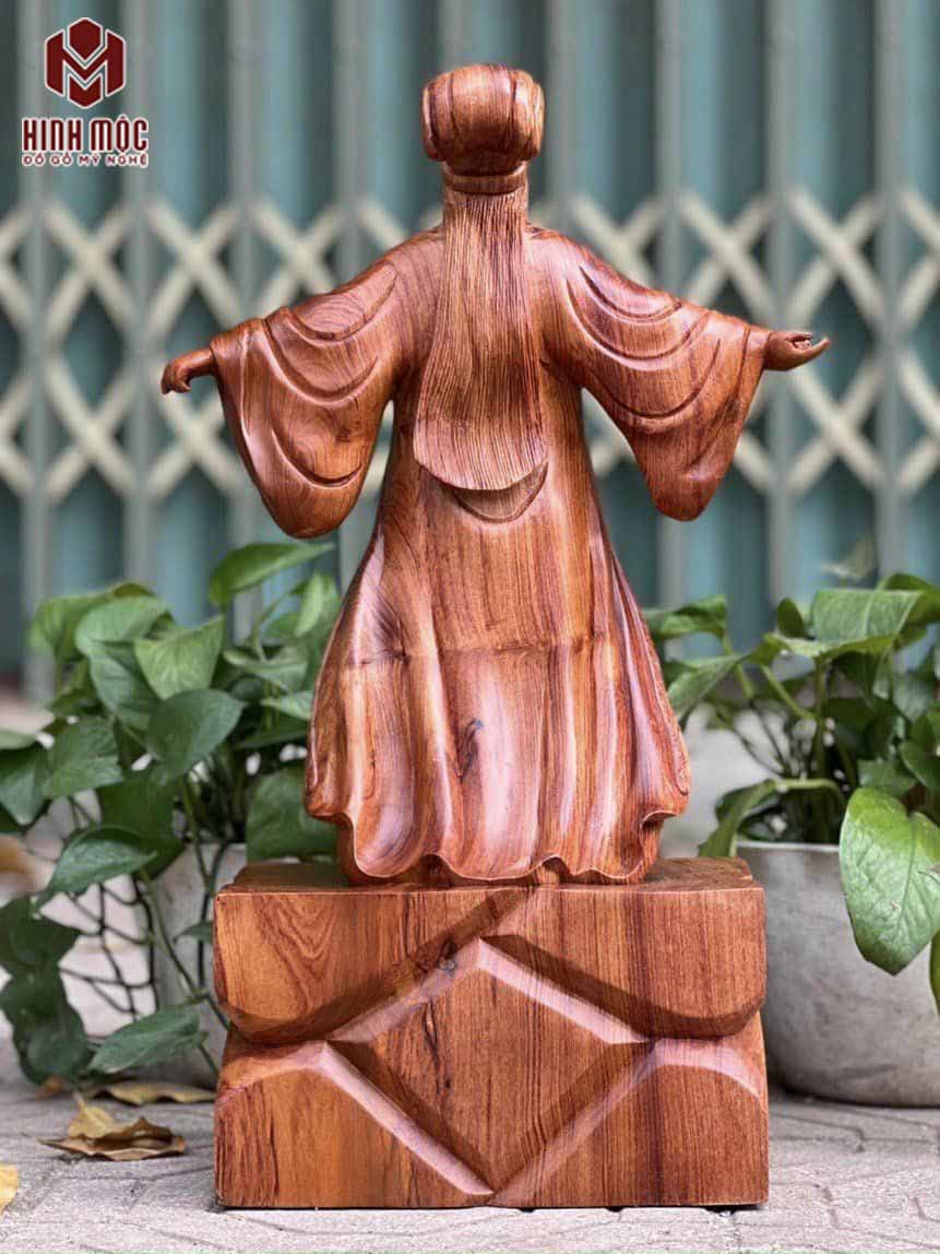 Tác phẩm đục CNC từ bản vẽ của các họa sỹ Trung Quốc, nghệ nhân người Việt mua lại và sửa đôi chút cho phù hợp. Tượng đục trên gỗ hương đá nhập khẩu, cao 50cm, ngang 20cm, sâu 13cm, liền khối hoàn toàn.