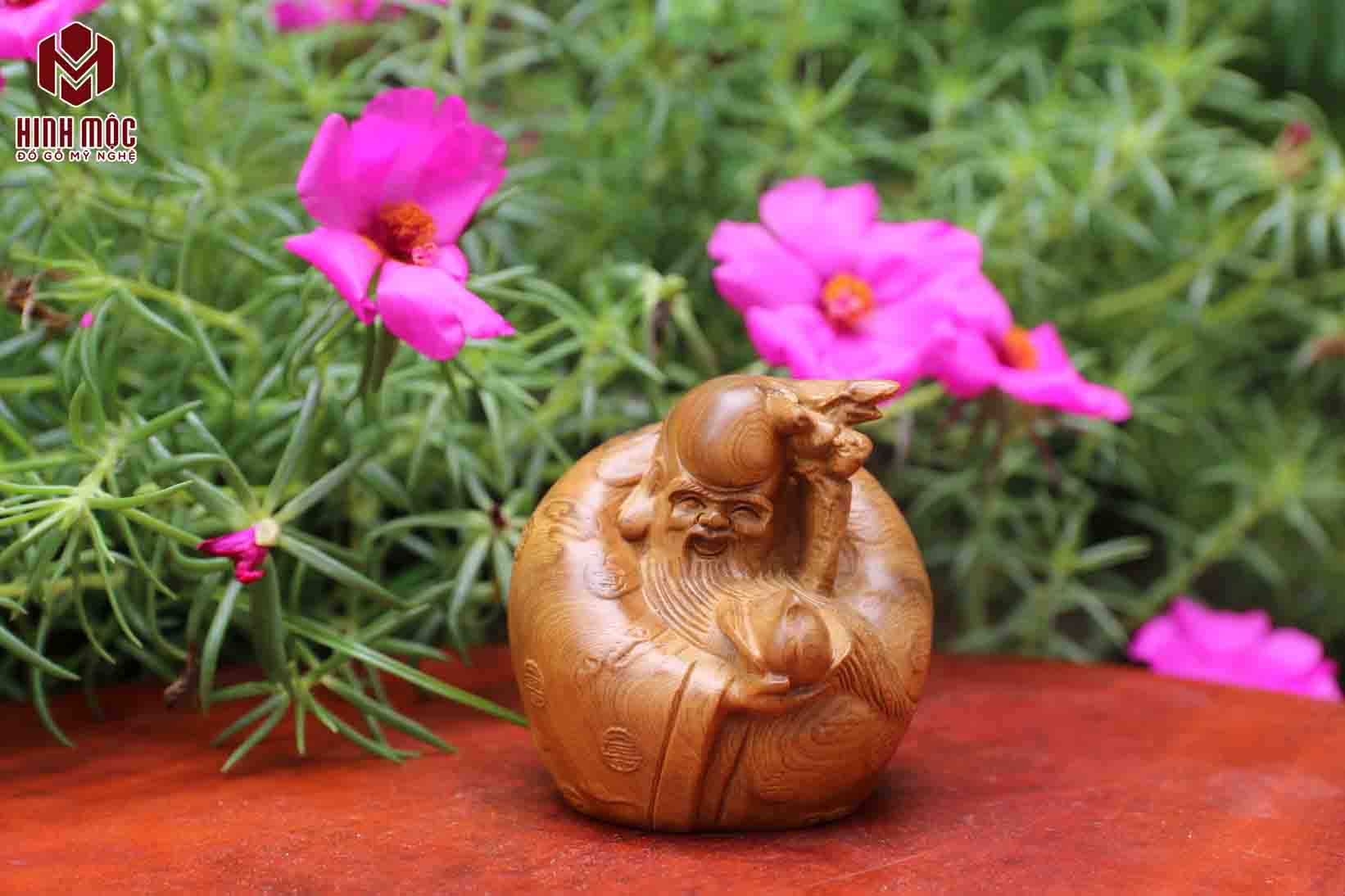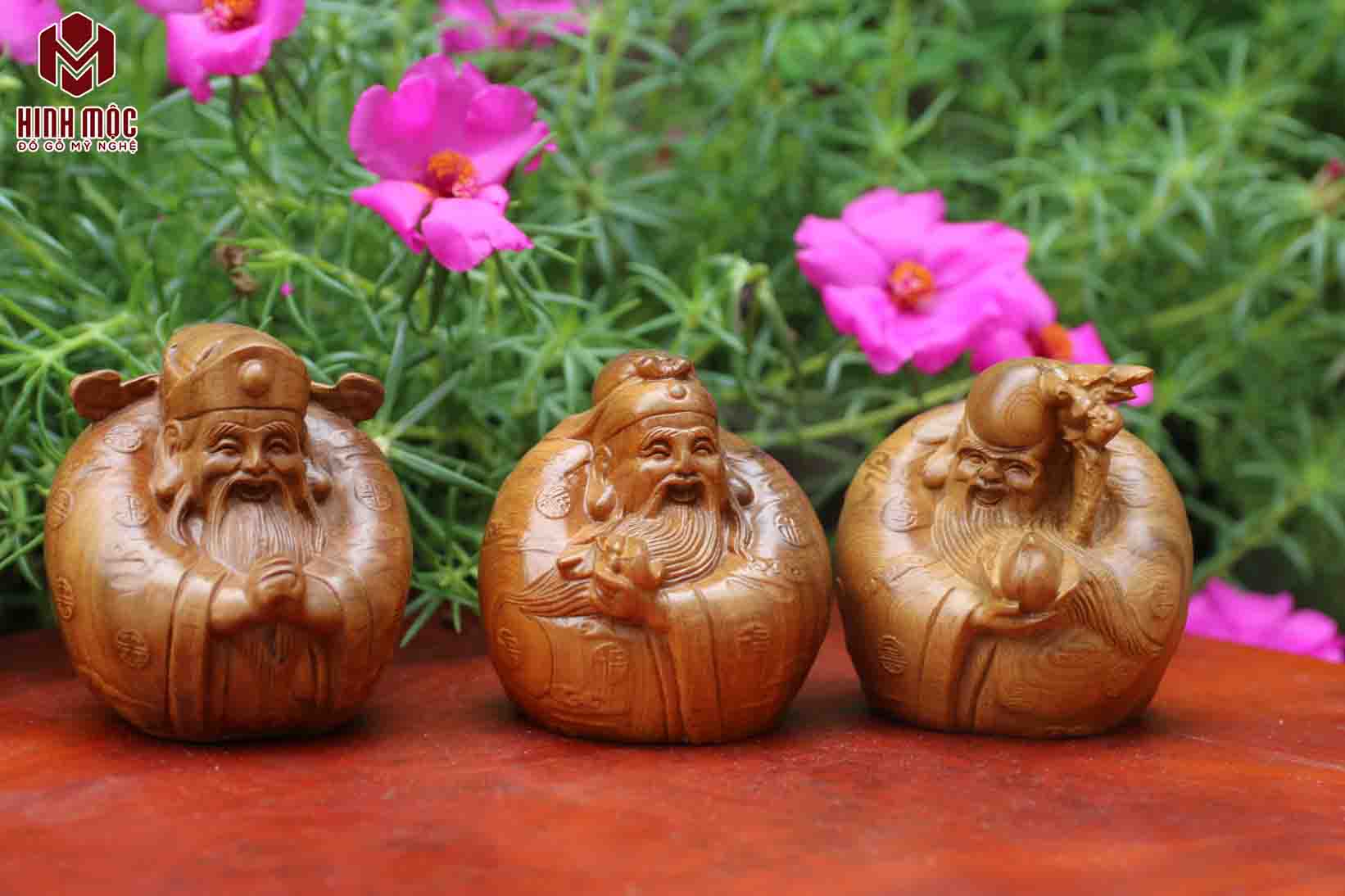 Tượng được đục bằng máy tính CNC, nguyên liệu là gỗ bách xanh có nu cực thơm. Tượng mô tả lại hình ảnh 3 ông tiên ông Phúc, ông Lộc, ông Thọ theo dáng chibi béo tròn ngộ nghĩnh.
