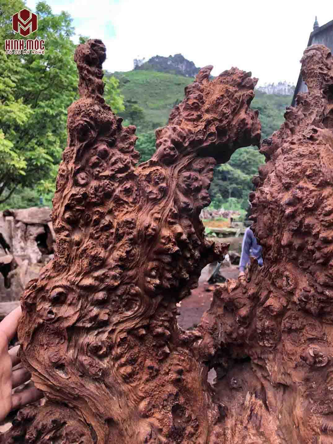 Tượng có kiểu dáng độc đáo, kết hợp giữa vẻ đẹp tự nhiên của nu gỗ với bàn tay khéo léo con người
