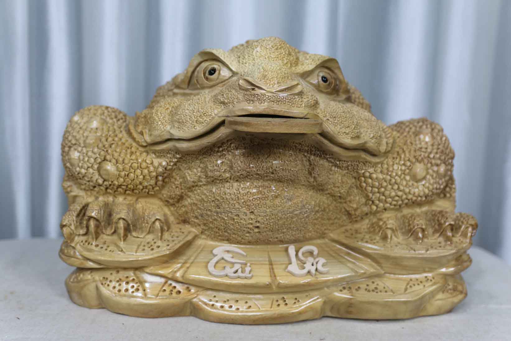 Cóc 3 chân ngang 38cm gỗ xá xị - Cụ cóc phong thủy ngậm tiền của năm 2023
