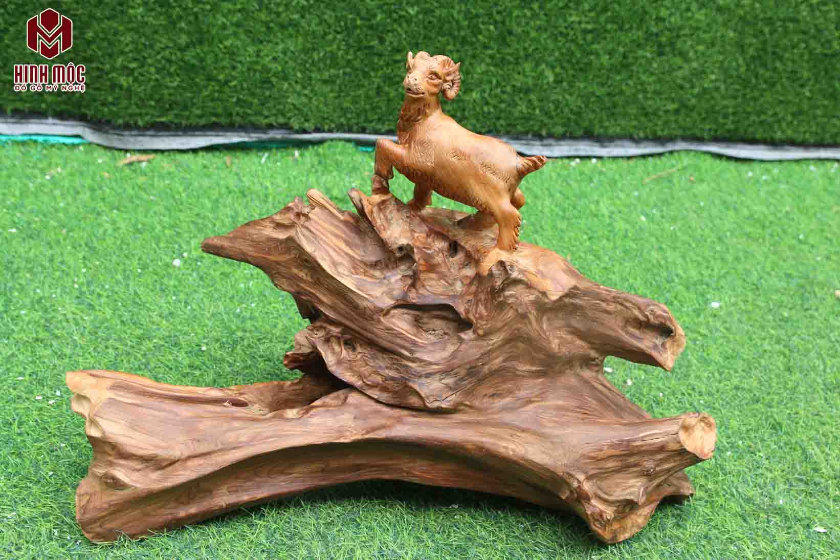 Nổi bật ở tác phẩm này là dáng gỗ, dáng gỗ đẹp, lũa nhiều, gỗ mọng tinh dầu, thơm phức. Dáng gỗ hao hao giống với dáng hình đồi núi, trên đó, nghệ nhân đục tạo hình hình ảnh con dê đang đứng. Dáng đứng mạnh mẽ, khỏe khoắn, chắc chắn như đang đón chào.