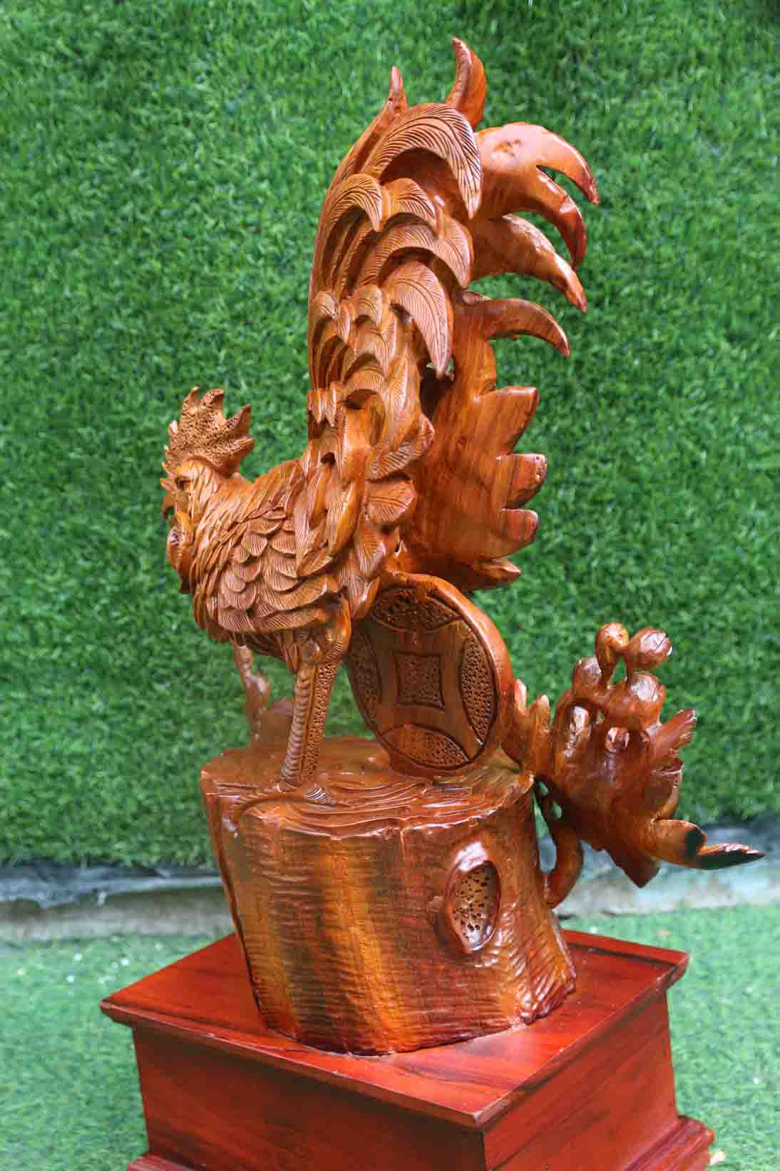 Gà kiếm mồi cao 54cm gỗ hương - Chân thực, sinh động và ý nghĩa