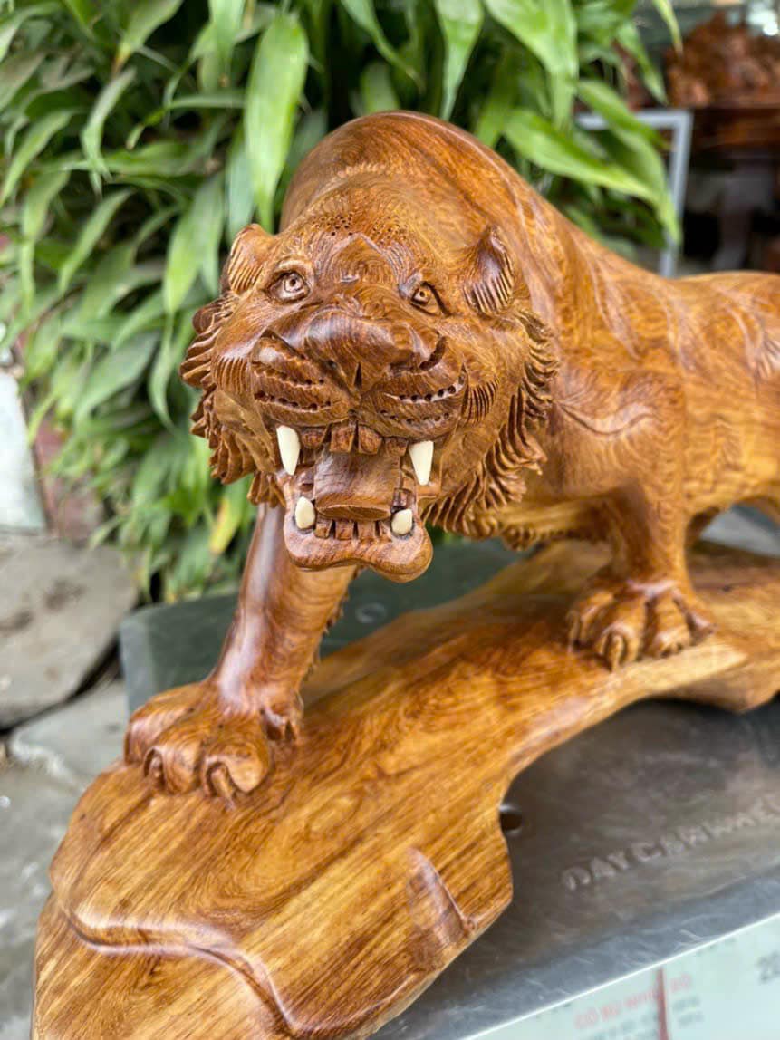 Hổ gỗ hương dài 57cm, đục tay. Hàng đẹp, liền khối. Nghệ nhân tạo hình tinh xảo