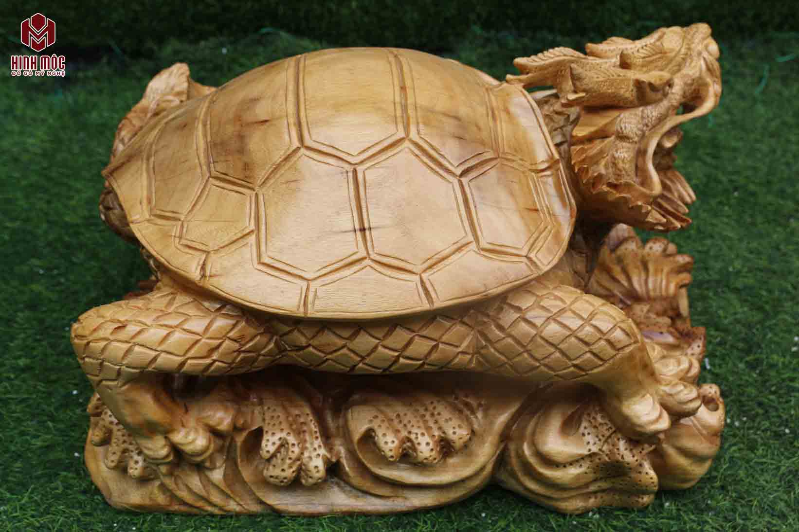Con rùa đầu rồng dài 50cm gỗ xá xị này còn được nghệ nhân đục tay hoàn toàn. Đường đục sâu, nét đục tinh xảo, tạo hình đẹp, thần thái, chuẩn theo phong thủy Á Đông. Đây thực sự được coi là 1 tác phẩm nghệ thuật!