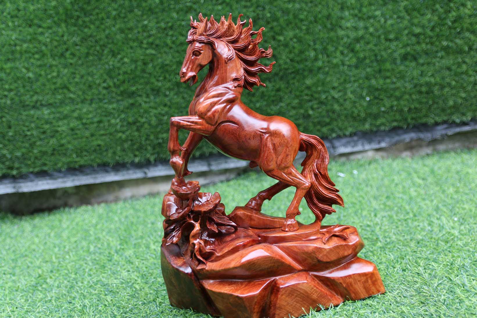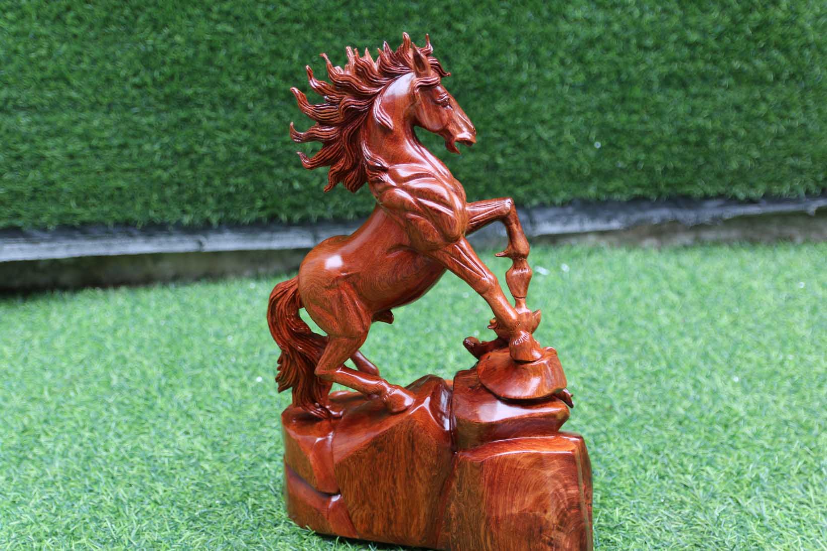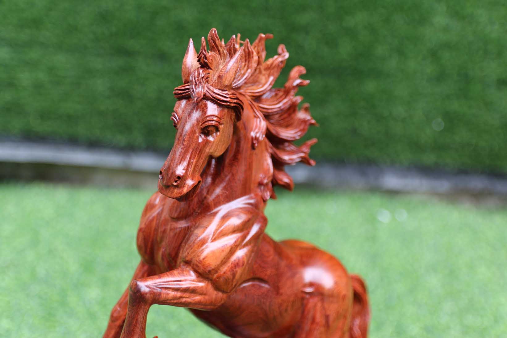 Ngựa nhỏ dáng đứng thong dong rất đẹp. Gỗ hương ta liền nạc siêu vân, nghệ nhân đục tay tinh xảo, thần thái