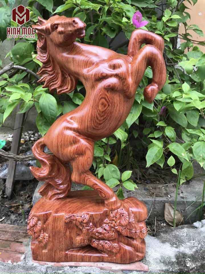 Tượng con ngựa đứng tung vó được tạo hình từ gỗ hương đá nhập khẩu. Gỗ sẵn, kích thước nhỏ nên giá cả vì thế cũng không cao.